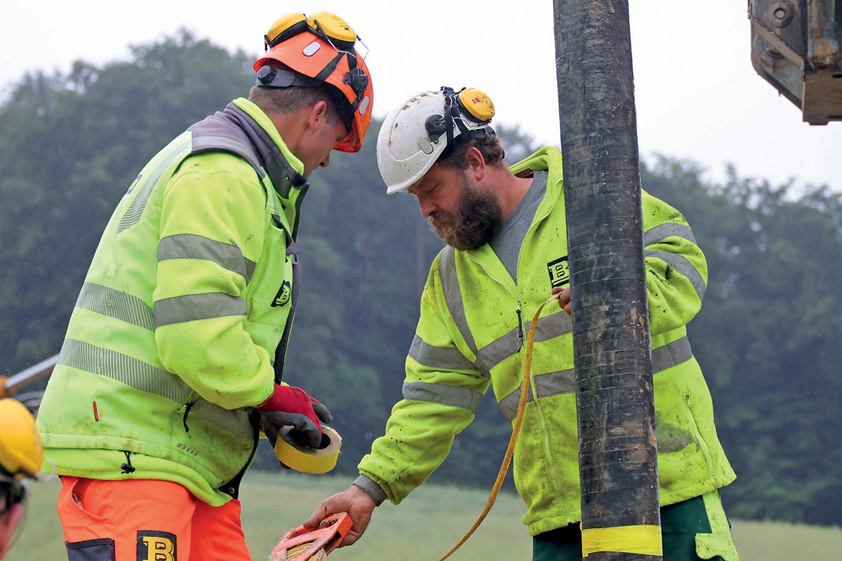 Tiefbohrungen können tausende Meter ins Erdinnere reichen. Am Anfang steht dabei immer eine bis zu 80 Metern tiefe Führungsbohrung. Unsere Spezialisten führen diese punktgenau aus und bringen danach die Verrohrung ein. Diese schützt das Grundwasser und gewährleistet die Standsicherheit. Sie verbleibt dauerhaft im Boden.