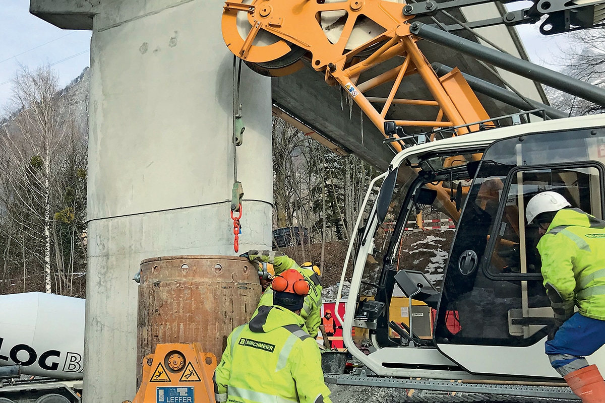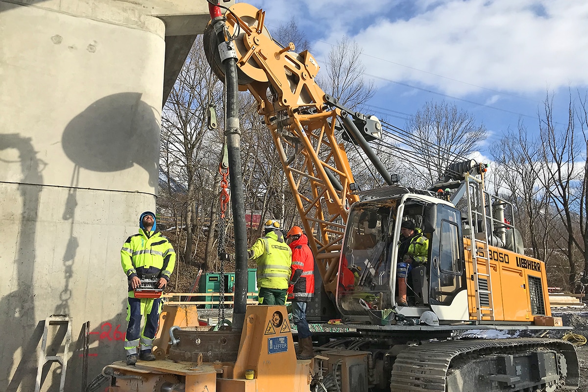 Die Greiferbohrung zählt zu den ältesten Bohrverfahren und ist bei lockerem Gestein einsetzbar. Ein Greifer an einem Seil fasst das Bohrgut und befördert es hoch. Wir setzen das Verfahren ein, wenn beispielsweise unter einer Brücke zu wenig Platz zum Stellen eines Drehbohrgeräts vorhanden ist.