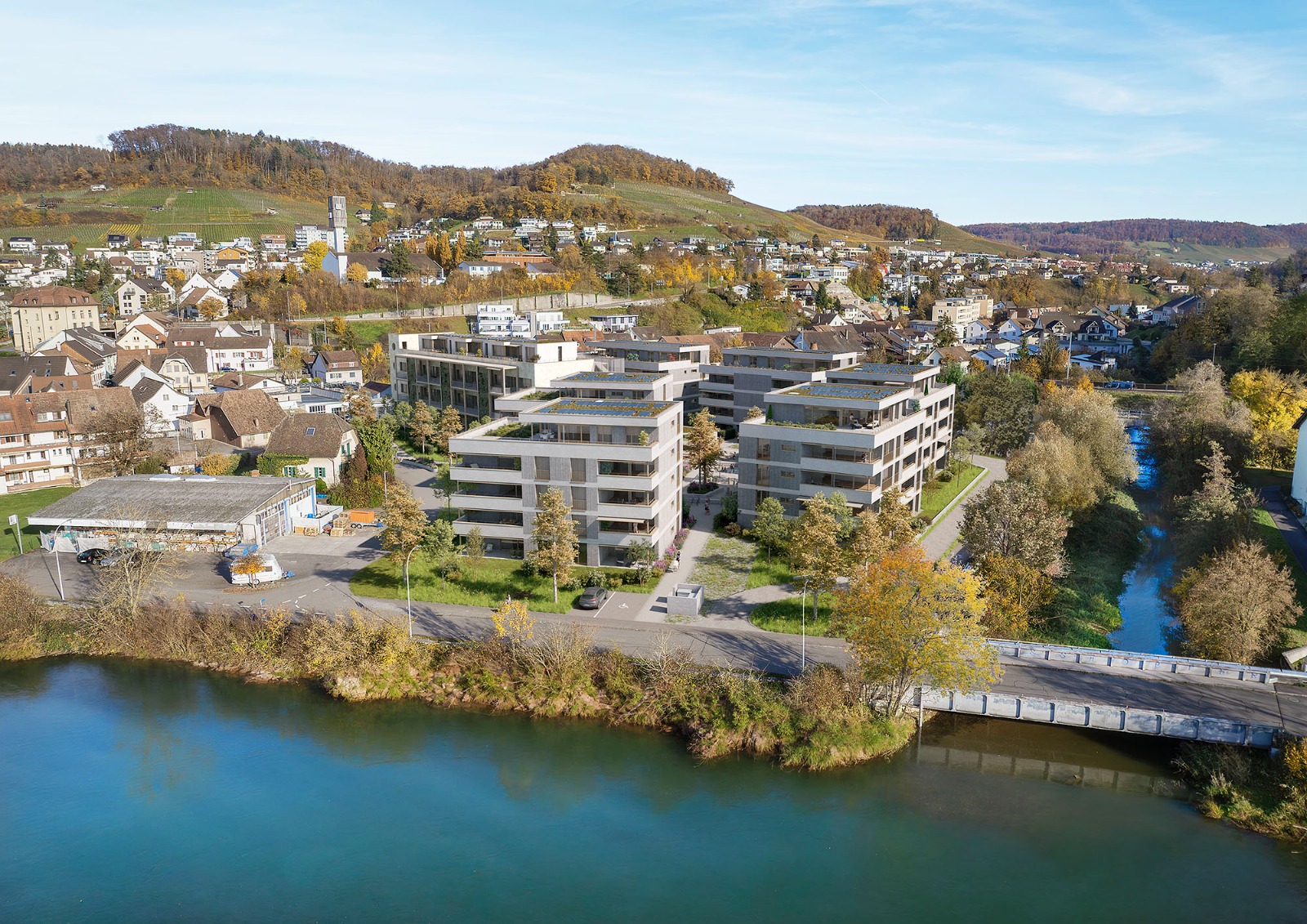In naturnaher Lage und in unmittelbarer Nähe zum Wasser entsteht an der Müligasse in Döttingen eine neue Wohnsiedlung mit insgesamt sieben Mehrfamilienhäusern. Die erste Bauetappe umfasst zwei Mehrfamilienhäuser mit Eigentumswohnungen von 3½ bis 4½ Zimmern, die keine Wünsche offenlassen. Hier geniessen Sie Ruhe und Natur in vollen Zügen. Dabei profitieren Sie gleichzeitig vom Komfort einer gut erschlossenen Kleingemeinde mit Top-Infrastruktur. Einkaufsmöglichkeiten, ÖV-Anschluss, Schulen und weitere Angebote des täglichen Bedarfs befinden sich ganz in der Nähe.
