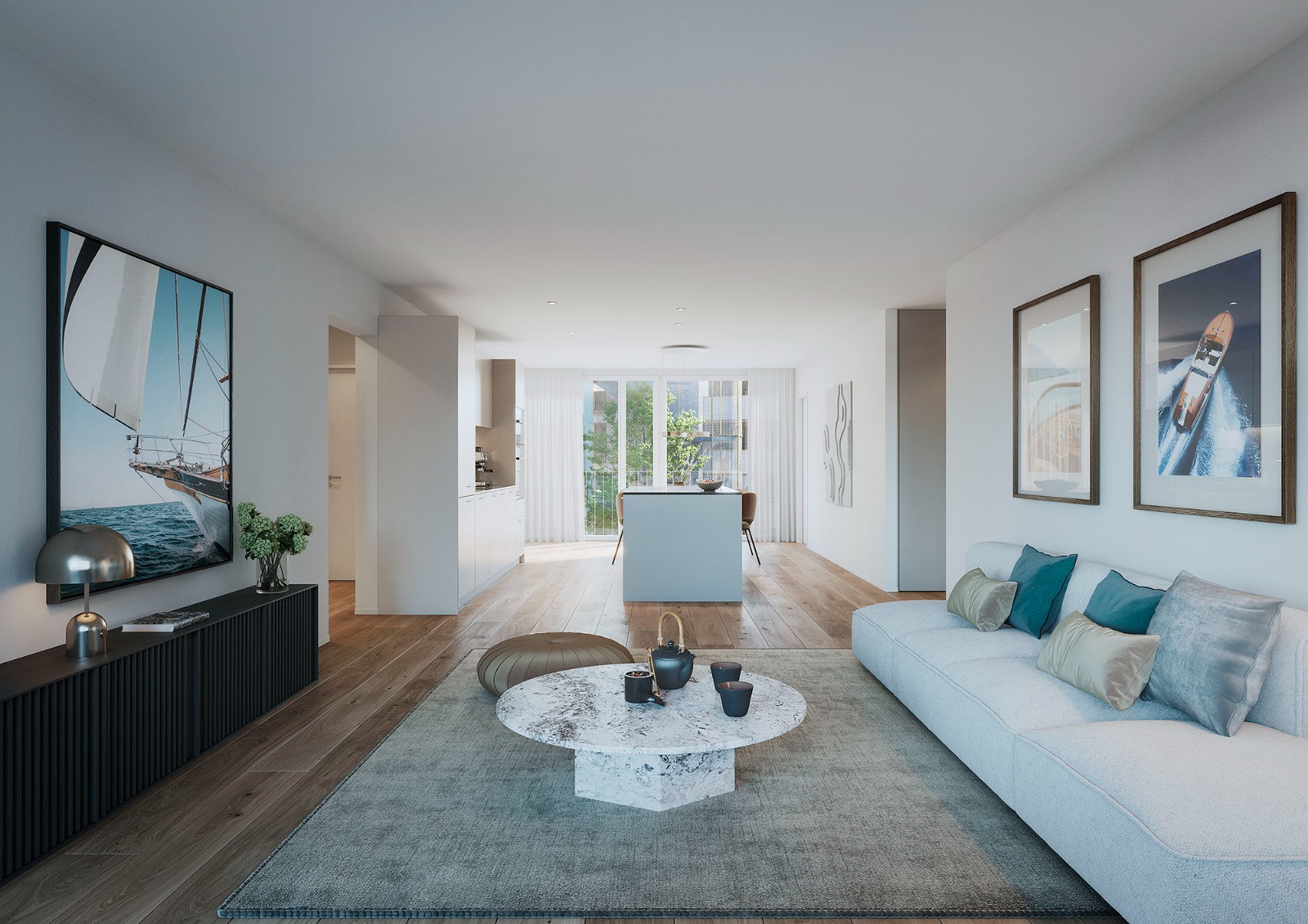 Die lichtdurchfluteten Wohnungen überzeugen durch einen grosszügigen Wohn-, Ess- und Küchenbereich, hochwertige Materialien und einen modernen Innenausbau. Ob Attikawohnung mit grosser Dachterrasse, Etagenwohnung mit vorgelagerter Terrasse oder Erdgeschosswohnung mit Sitzplatz, jede Wohnung bietet ihren ganz eigenen Charakter und dennoch ein gemeinsames Qualitätsversprechen: zeitgemässes, komfortables Wohnen mit Blick ins Grüne und in den liebevoll gestalteten Innenhof.