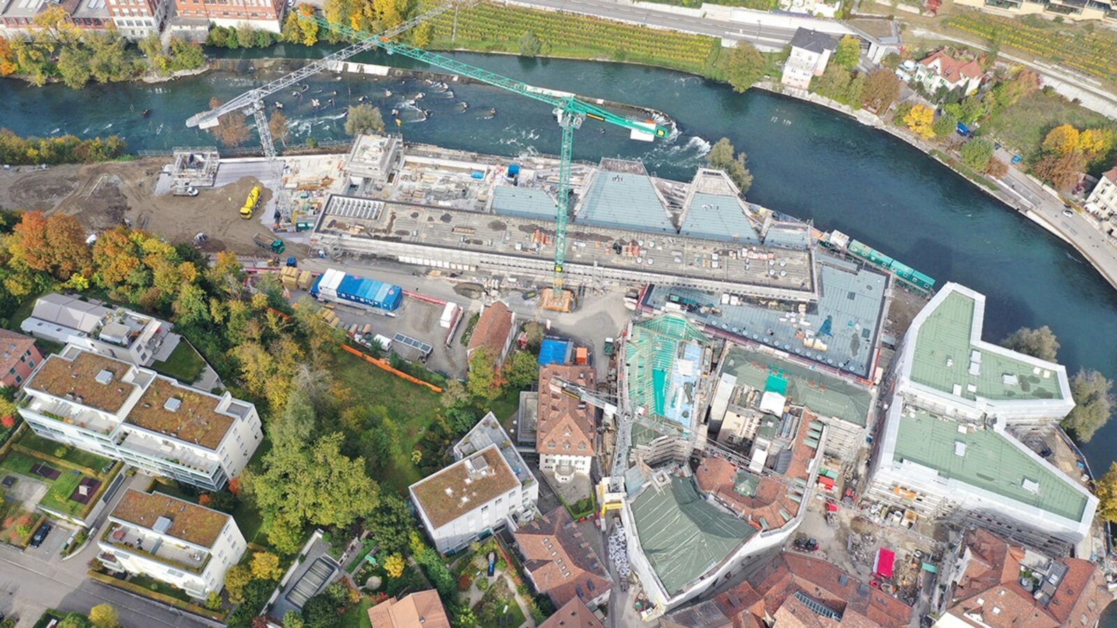 In einer Arbeitsgemeinschaft durften wir die Rohbauarbeiten für die Neubauten des Thermalbades und des Ärztehauses ausführen. Die grösste Herausforderung der Baustelle direkt an der Limmat war neben der schwierigen Baustellenlogistik die Grösse und Komplexität des vom Stararchitekt Mario Botta geplanten Bauwerks. Dabei wurde das Baustellenteam besonders bei der Umsetzung der vorgespannten, markanten „Bottafinger“ gefordert. Durch ihre Höhe und Spannweite überragen sie den gesamten Bau. Mit einem Team von bis zu 40 Mitarbeitenden wurden die Rohbauten der zwei Gebäude innerhalb von 18 Monaten erstellt. Die Eröffnung des Thermalbades ist auf Ende Herbst 2021 geplant.