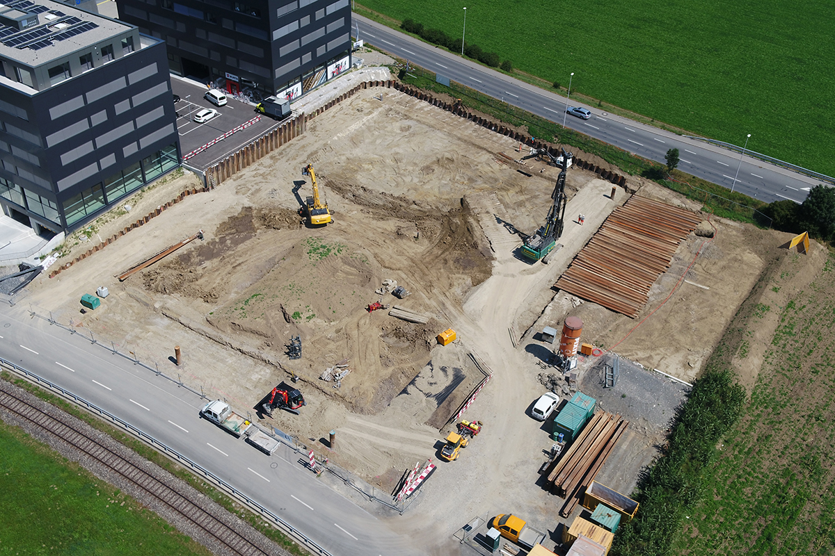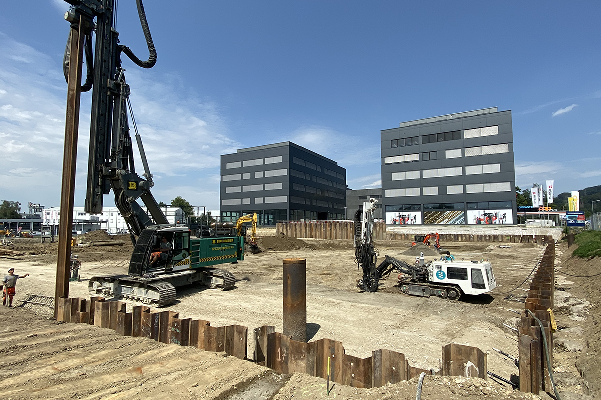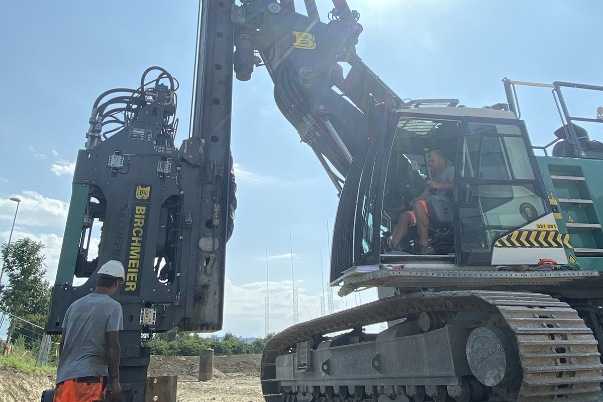 Spundbohlen einbringen unmittelbar im Bereich einer Hauptstrasse