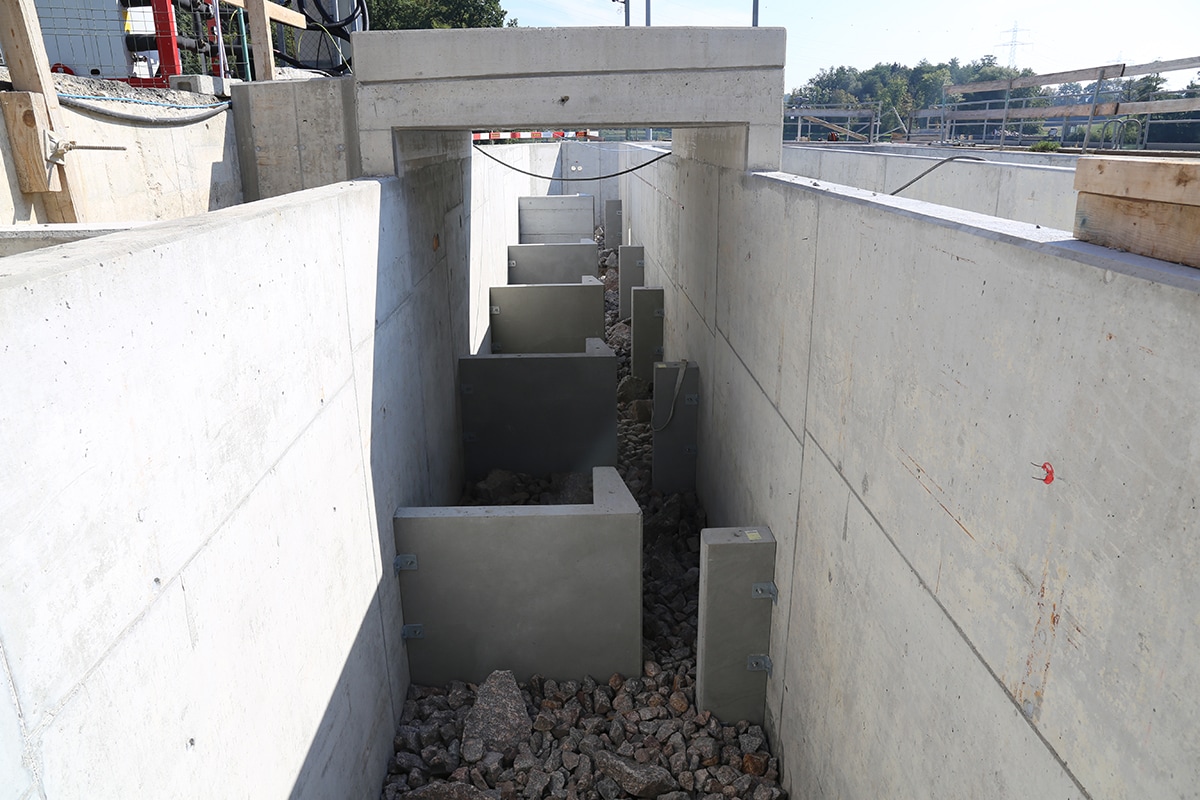 - Dimensionierung, Produktion und Versetzarbeiten von Senkkästen und Abschottelementen