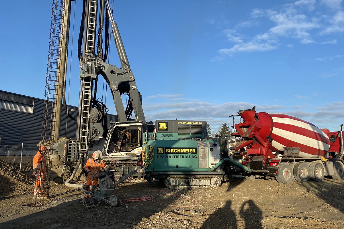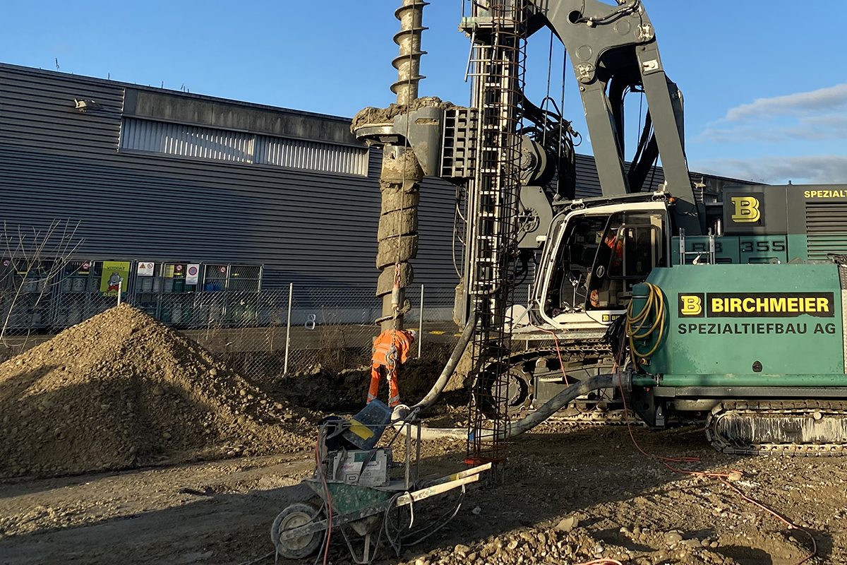 SOB E-Schneckenpfähle 154 Pfähle mit d = 620 mm bis zu einer Tiefe von 33.30 m (Gesamtlänge = 3900 m) und 73 Pfähle mit d = 880 mm bis zu einer Tiefe von 30.45 m (Gesamtlänge = 2085 m)