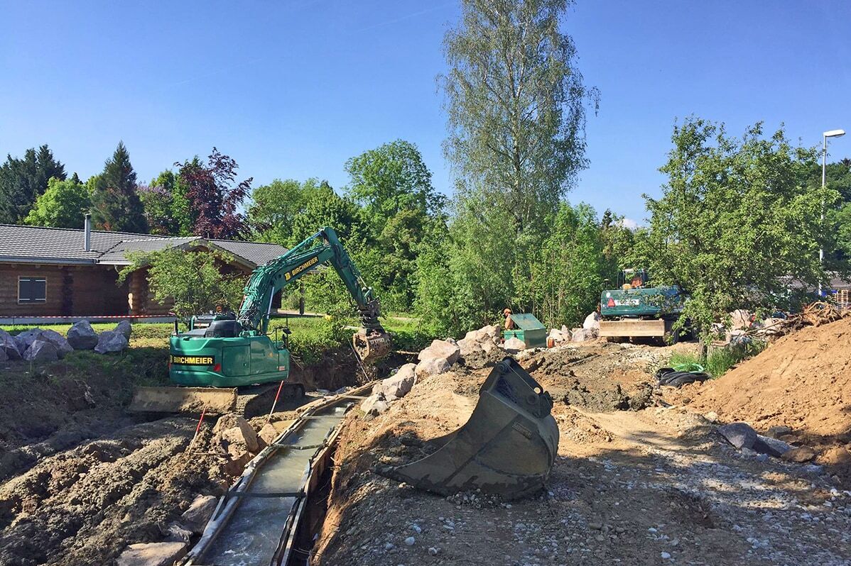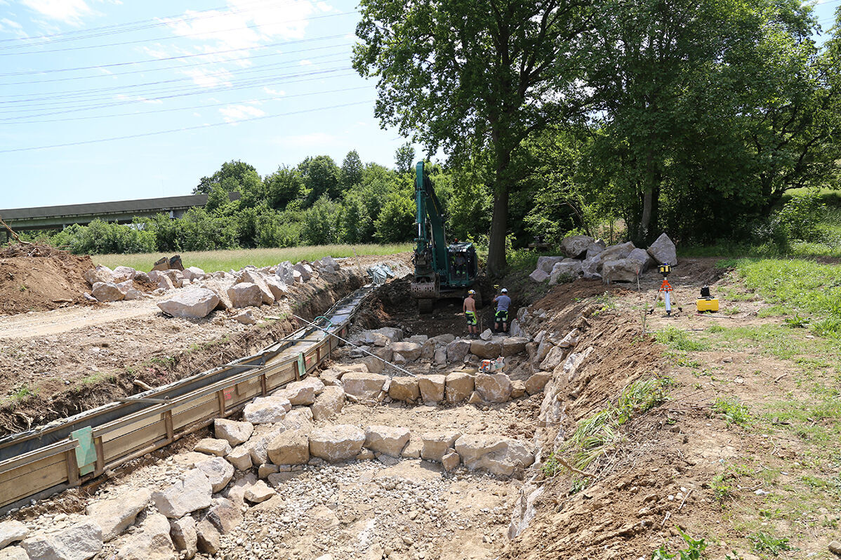 - Bachprofil aufweiten, erstellen von Erdwällen und Aufschüttungen