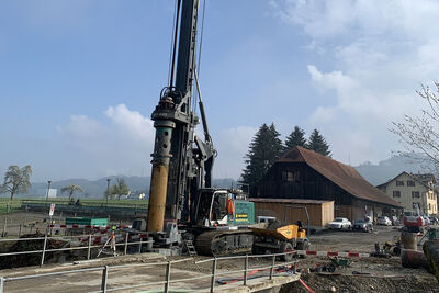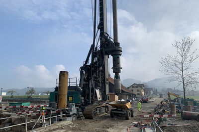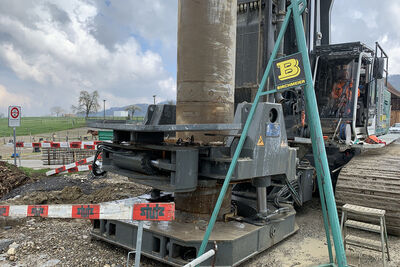- Bohrungen erstellen mit Verrohrungsmaschine VRM 150 (Gesamtgewicht Bohrgerät + VRM = 145 to)