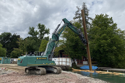 - Spundwandarbeiten mit speziellem Seitengriff-Rüttler
