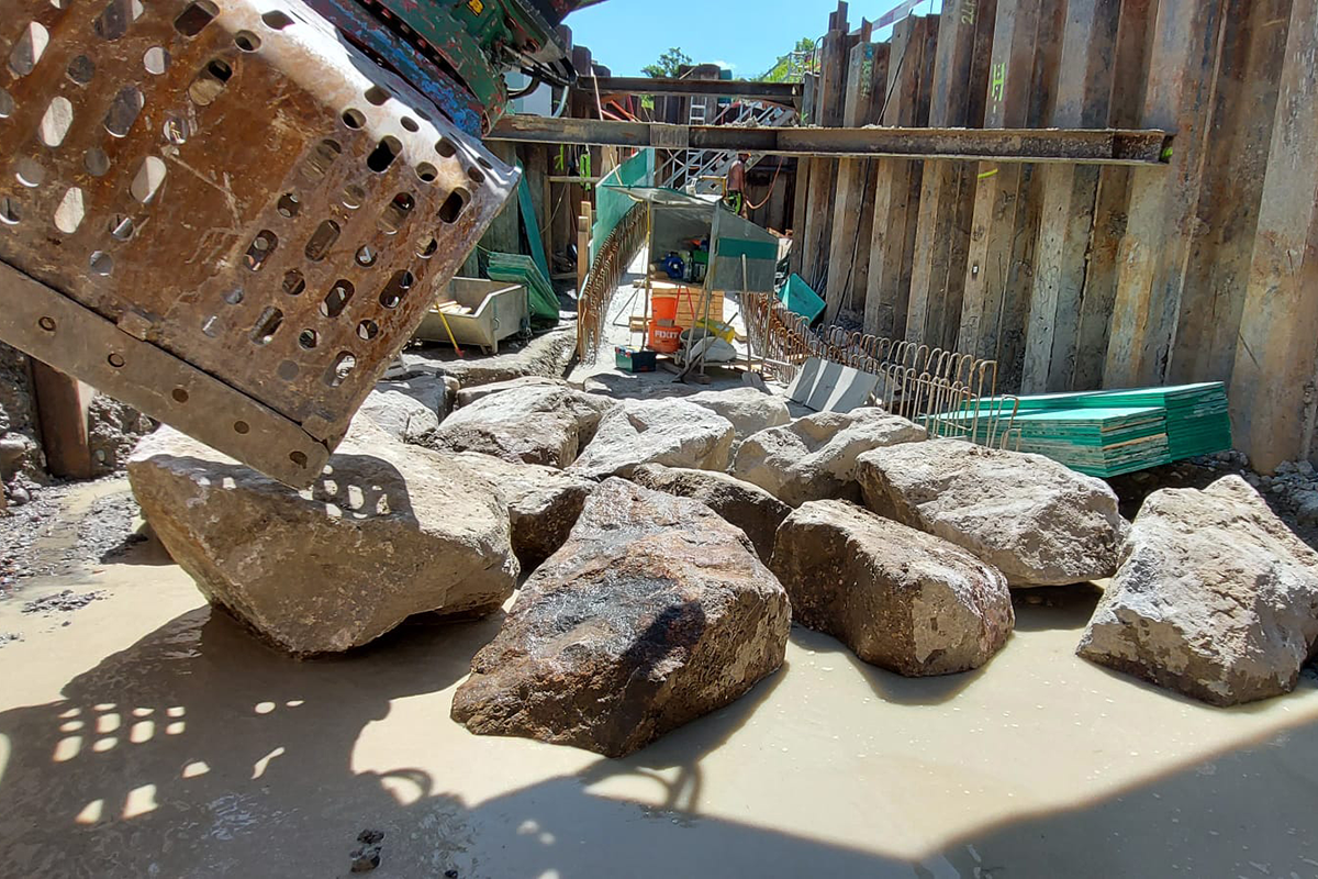 - Microtunneling-Vortrieb über zwei Haltungen mit insgesamt 350 Meter Länge und einem Rohdurchmesser von DN 1400 inkl. Kurvenvortrieb mit einem Radius von 120 Meter.