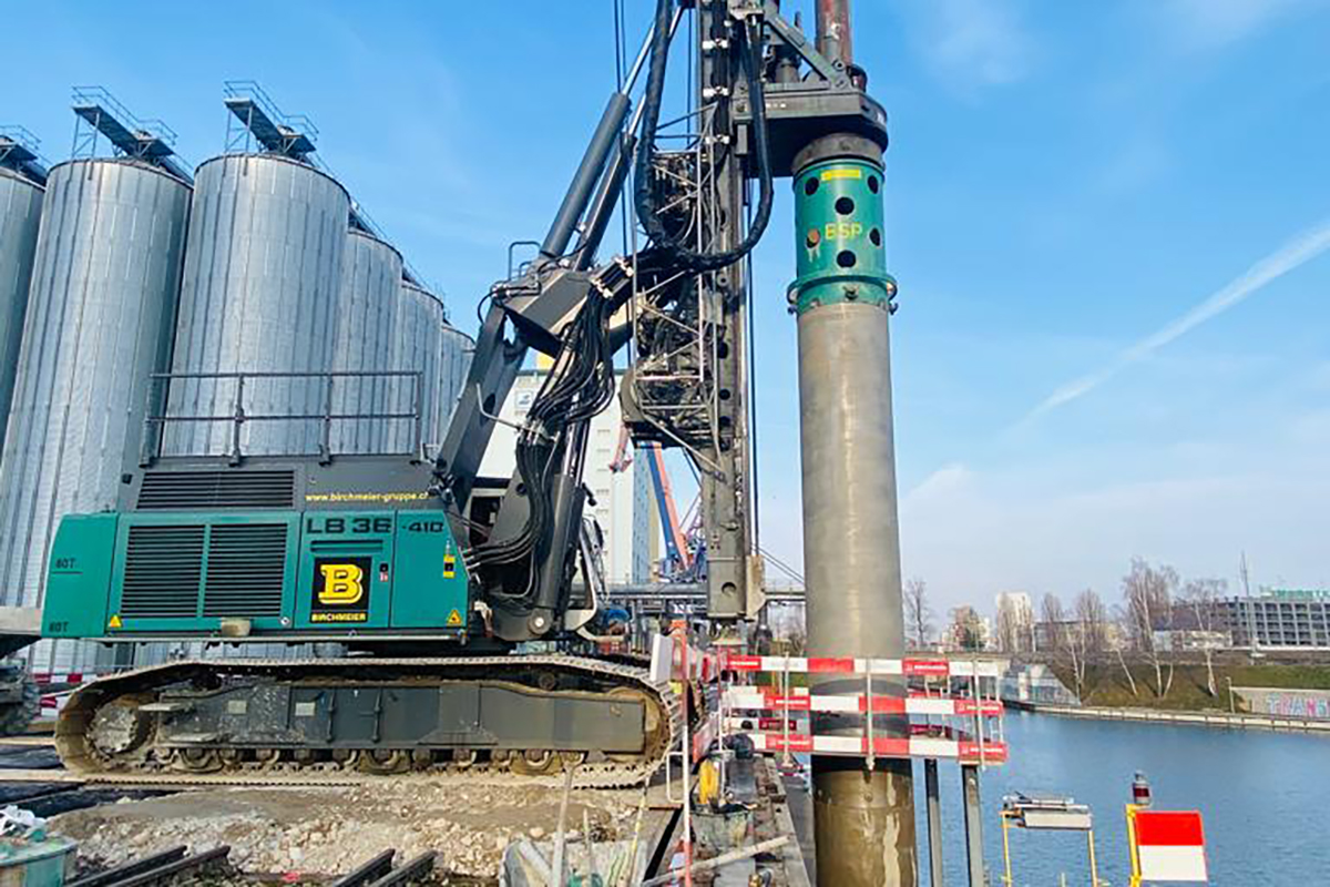 49 Pfähle d=1‘100mm bis zu 20.55m (Länge Total 995m) mit LB 36