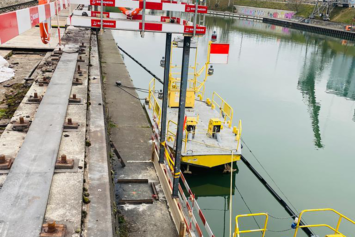 - Eine der Herausforderungen dieser Baustelle war die Pfähle am Wasser, da das Bohrgerät auf der sogenannte Quaimauer, die 5 m höher ist, stehen musste. Für die Sicherheit unserer Mitarbeiter haben wir ein Arbeitspodest gebaut, dass durch die SUVA abgenommen wurde. Ebenfalls interessant waren die Pfähle im Gleisbereich.