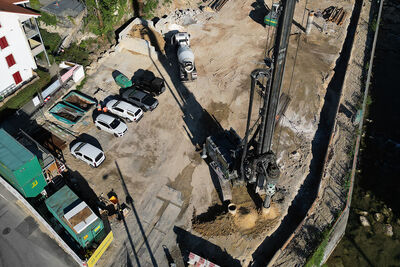 Auf der ehemaligen Drahtwerke-Parzelle in Bözingen (Biel) entsteht ein imposantes 19-geschossiges Wohnhochhaus mit einer Höhe von 55 Meter! Dank der hervorragenden Arbeit unseres Teams konnten die Spezialtiefbau- und Erdbauarbeiten für die Baugrube direkt angrenzend am Wasser (Schüss) erfolgreich abgeschlossen werden.