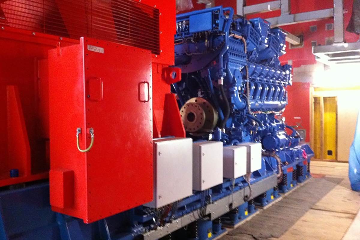 Neubau Dieselgebäude für Notstromanlage, Massivbau mit Flachdach und vorgehängter Fassade aus Betonelementen und Wellblech, Ausbau Industriestandard