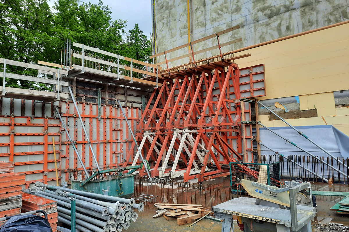 - Einhäuptige Ortbetonkonstruktion bis 6 Meter Wandhöhe