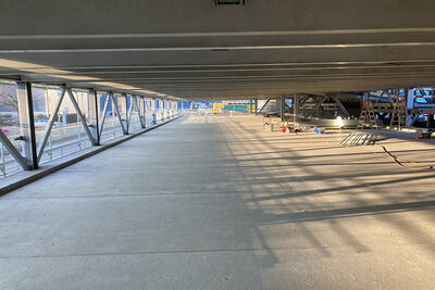 Neubau eines siebenstöckigen Parkhauses mit 951 Parkplätzen, Massivbauweise mit Elementbetonplatten auf Stahlkonstruktion überdacht