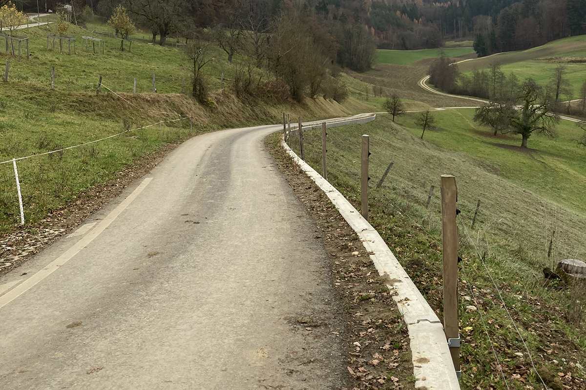- Strassensicherung mit Holzpfählen