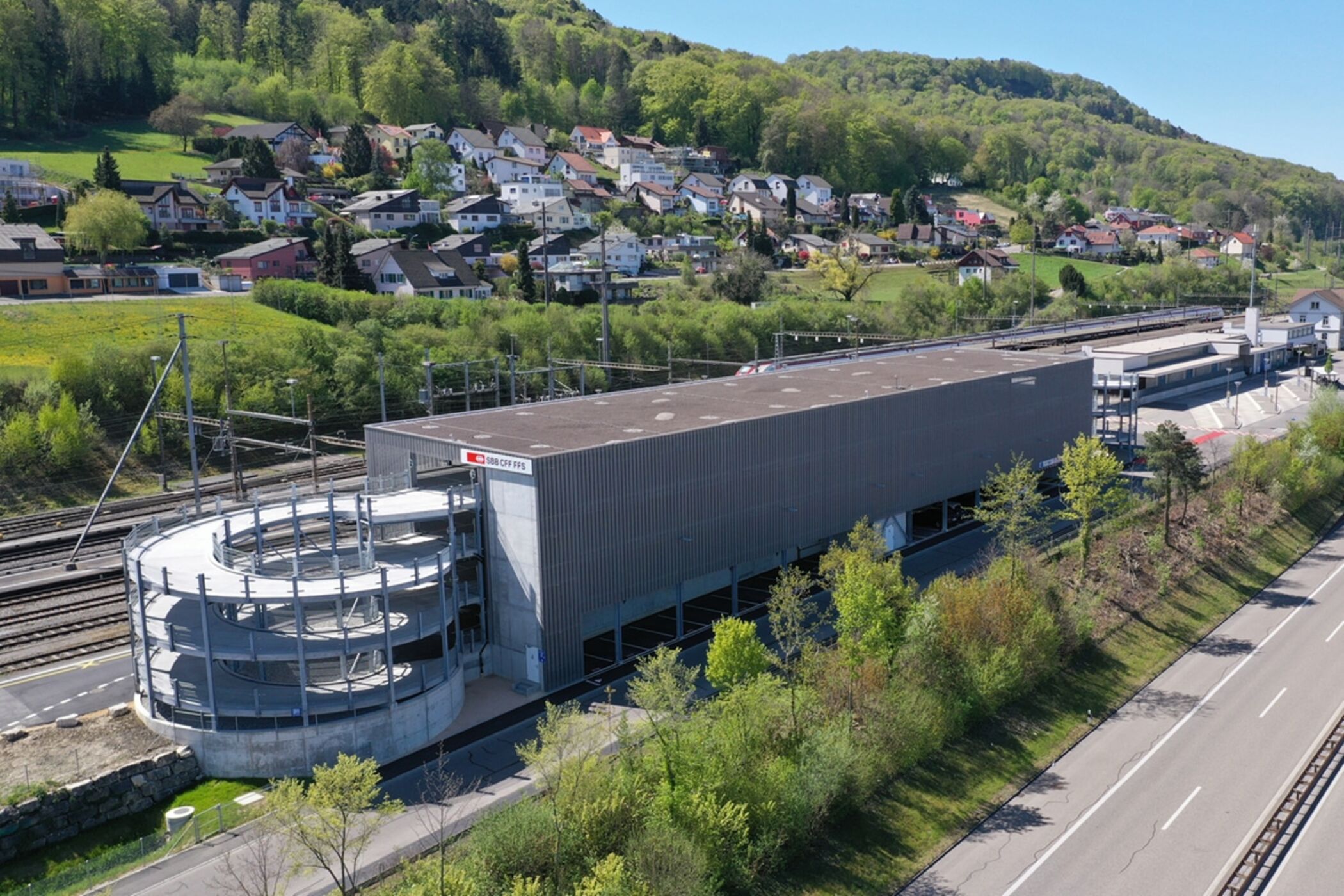 Um der steigenden Nachfrage nach Parkpätzen gerecht zu werden, wurde in Stein ein neues Park-and-Rail-Parkhaus erstellt. Das 16.5 Meter breite und 13.5 Meter hohe Parkhaus besteht aus einer Stahl-Beton-Konstruktion verfügt über 185 Parkplätze. Beim Bau kamen hochwertige, vorgefertigte Betonteile zum Einsatz. Im Bereich der Parkplätze stören keine freistehenden Träger. Dies ist dem Einsatz von 16 Meter langen Rippenplatten zu verdanken, die die volle Parkhausbreite überspannen. Eine der zentralen Herausforderungen während der Bauphase waren die Platzverhälntnisse. Nur 20 Meter Platz stand zwischen Strasse und Schiene für das 16 Meter breite Parkhaus zu Verfügung.