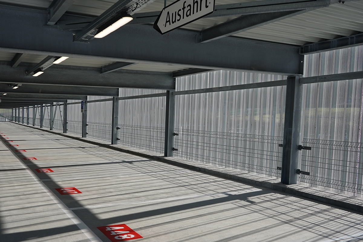 - 4-stöckiges Parkhaus mit 185 Parkpätzen und zwei Auf-und Abfahrtsrondellen