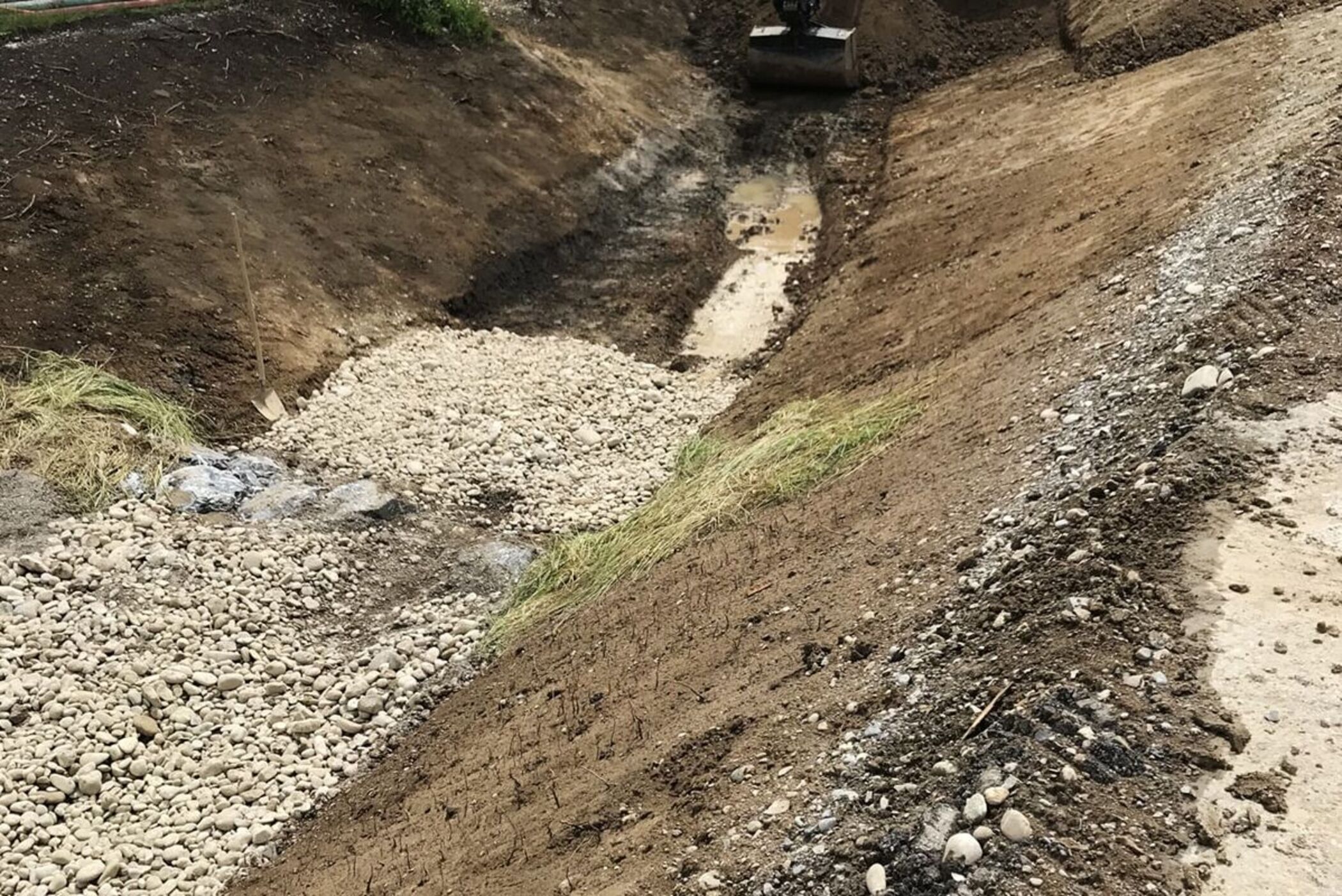 - Umfangreiche Wasserhaltung und Umlegen von bestehenden Gewässern