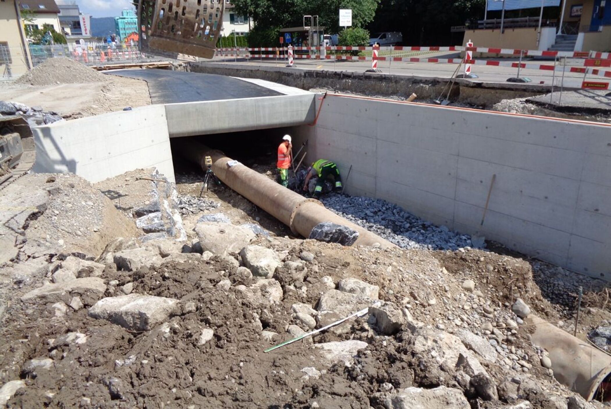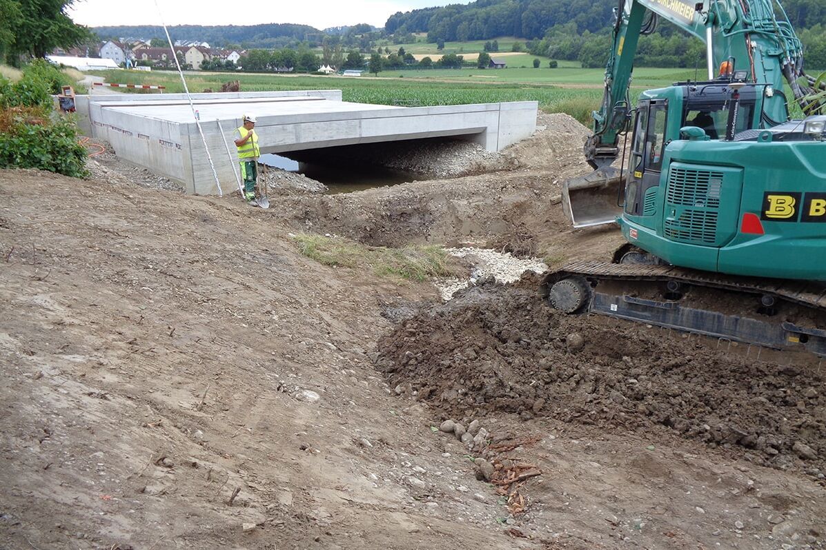 Hochwasserschutz und Revitalisierung Schäflibach, Brücke Kreisel Feldstrasse und Anbindung des linken Ufer vom Schäflibach im Bereich Birmensdorferstrasse / Feldstrasse.