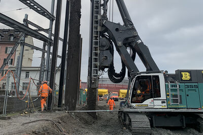 - Bohrpfähle bis 24 m mit drei verschieden gespannten Grundwasserspiegeln