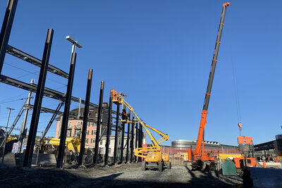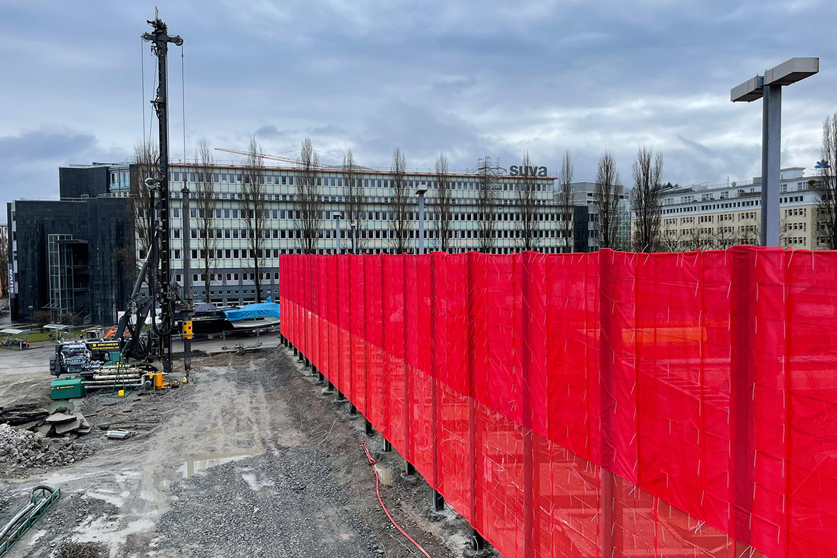 - Gleichzeitiges versetzen vom Stahlträger HEB 300 für das Schutznetz in den frisch erstellten Ortsbetonbohrpfahl