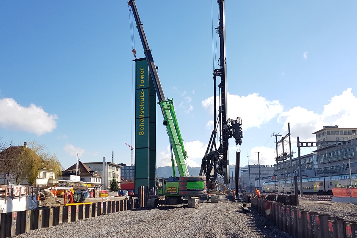 - Einbringen der Spundwände unter Verwendung eines von BSP entwickelten und eingesetzten Schallschutzes zur Lärmreduktion