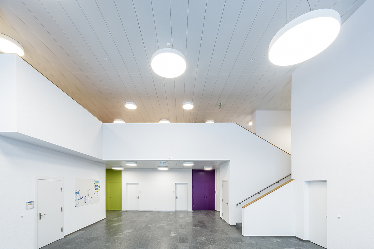 Neubau Schulhaus, dreistöckig, Untergeschoss in Stahlbeton, EG / OG in Holzelementbauweise