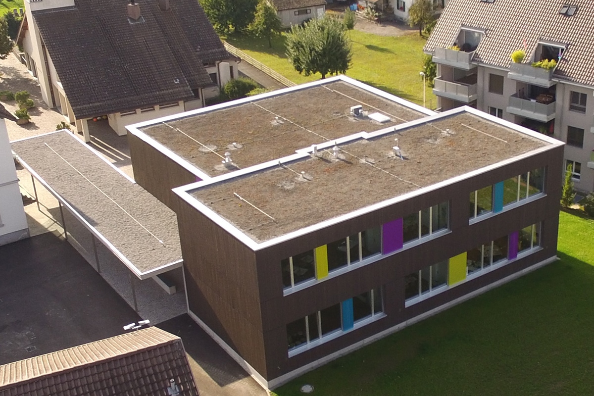 - Totalunternehmer-Auftrag (öffentliche Submission), Erstellen eines neuen und zeitgemässen Schulhauses mit vier Klassenräumen und Gruppenräumen sowie einer Aula