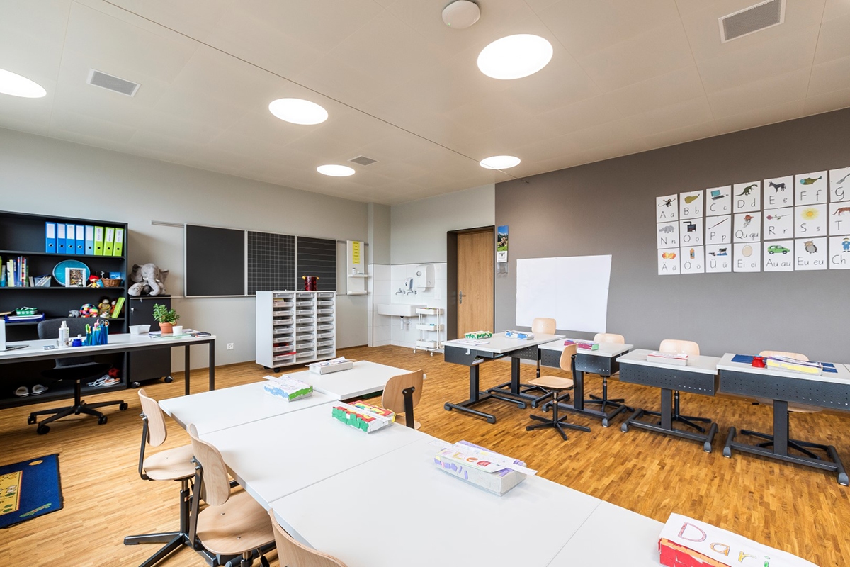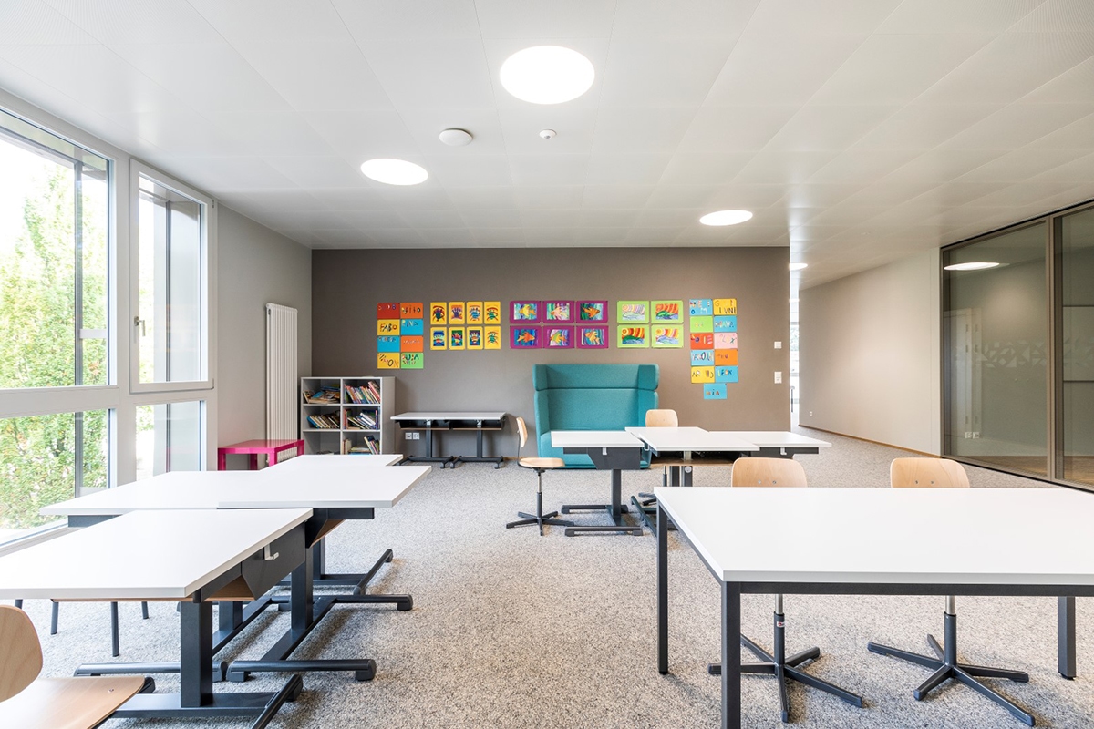 Neubau einer Primarschule (16 Klassenzimmer) mit Kindergarten (4 Kindergartenzimmer) in Kombination von Stahlbeton und Holzbauelementbauweise