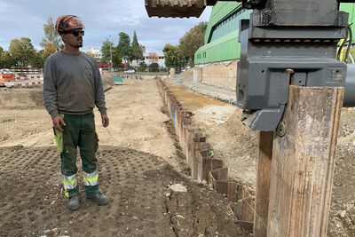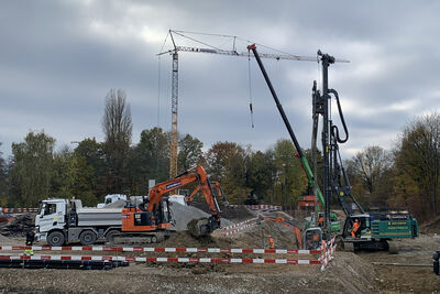 - Einbau Spundwand wie auch erstellen der Bohrpfähle mit einem Gerät LRB 18