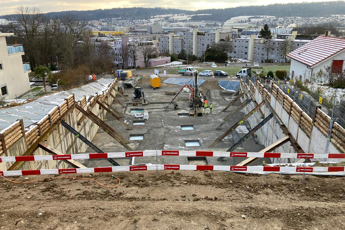 - Anspruchsvolle Baugrubensohle mit diversen Steigungen, Neigungen und Gefällen